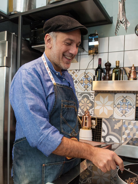 drei verschiedene Mittagsgerichte - immer dabei ist eine Pasta. Für davor oder dazwischen gibt es sizilianische Snacks, wie gefüllte und frittierte Kugeln aus Safranreis (Arancine),dicke ,frische Blechpizzastücke und selbst gebackenes Brot. Danach verwöhnt Roberto seine Gäste mit Tiramisu und verschiedenen, selbstgemachten Torten mit Pistazien, Haselnuss und Schokolade. Dazu einen Espresso aus der kleinen italienischen Rösterei Moka Termini.